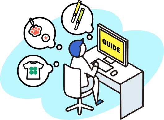 お問い合わせフォームまたはメールにて、希望のグッズ内容・数量・納期などをお知らせください。内容を確認のうえ、詳細なお見積りをご案内いたします。