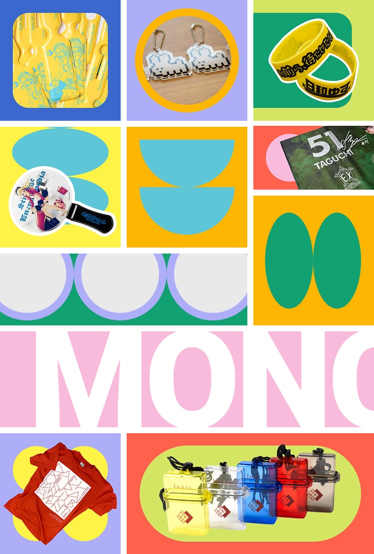 さまざまなアーティストやアイドル、スポーツなどあらゆるエンタメ・イベント業界のオリジナルグッズを製作。OEM製造にも対応し、規格品からフルオーダーまで幅広いニーズにお応えします。